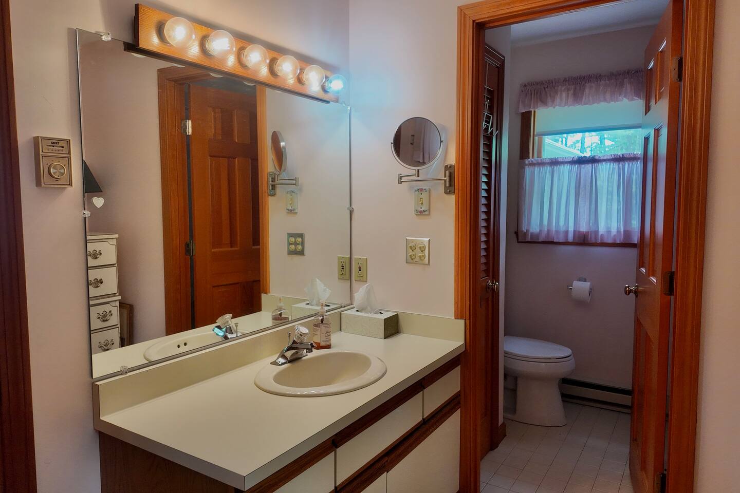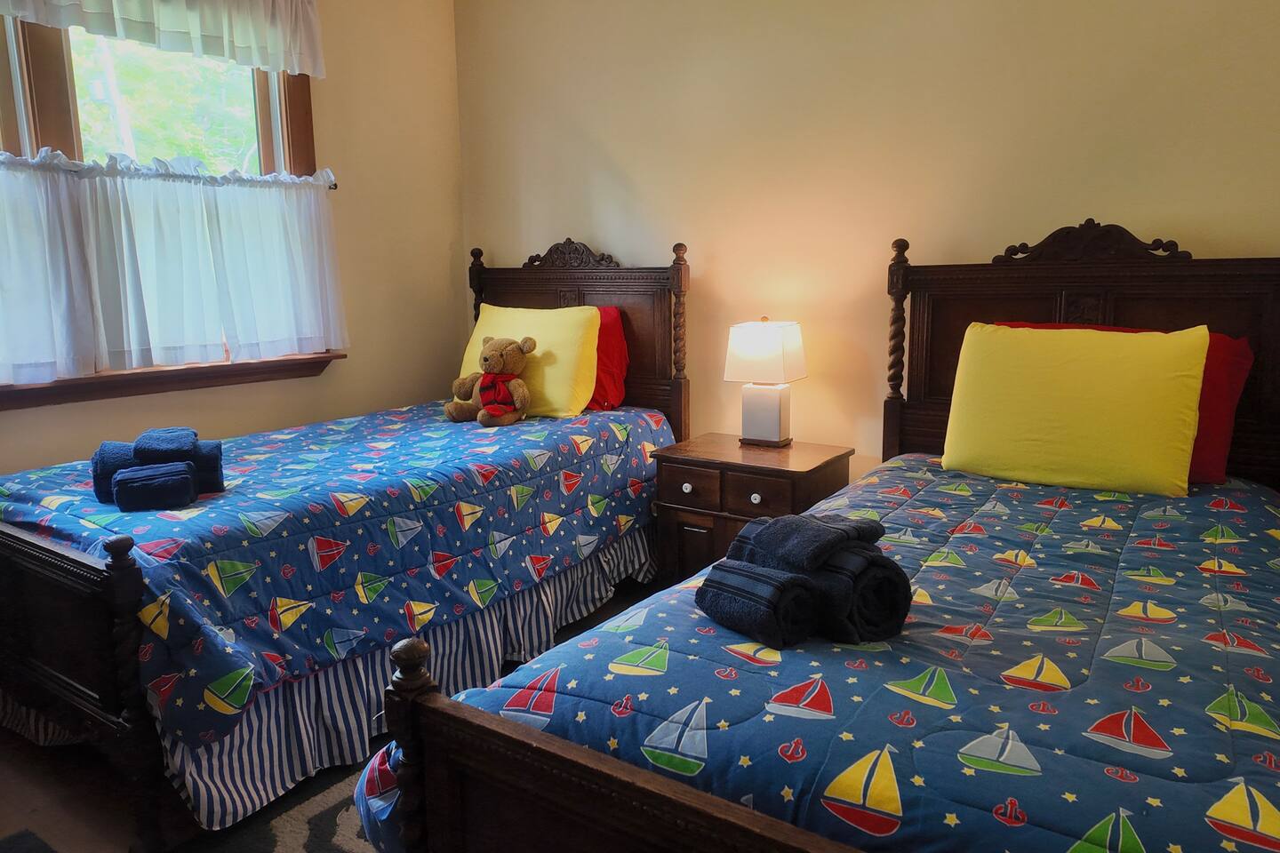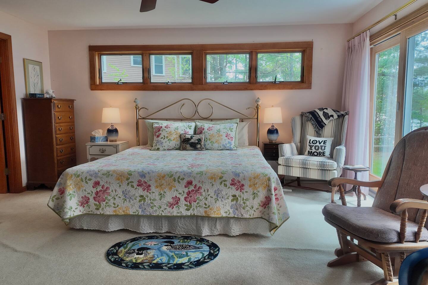 Here's more of a deep dive into our home! Living Room ✓ Four sofas, accent chairs, throw pillows, blankets ✓ Flat screen smart TV ✓ Books and board games ✓ 2 coffee tables ✓ Desk space ✓ Fireplace (please do not use!) ✓ Slider to outside porch ✓ Views of the lake Dining Room/Kitchen ✓ Large dining table that seats 6 ✓ Coffee maker ✓ All small appliances you could need ✓ Dishwasher ✓ Stove/Oven ✓ Many utensils and dishware ✓ Laundry area Bedroom One ✓ Comfy queen size bed ✓ Disinfected pillows and linens ✓ Large closet with hangers ✓ Mirror ✓ Two nightstands ✓ Storage space Bedroom Two ✓ Three twin sized beds (one bunk, one regular) ✓ Disinfected pillows and linens ✓ Large closet with hangers ✓ Nightstand ✓ Storage space Bedroom Three ✓ Two twin sized beds side by side ✓ Disinfected pillows and linens ✓ Large closet with hangers ✓ Nightstand ✓ Console table ✓ Mirror Bedroom Four ✓ King sized bed ✓ Disinfected pillows and linens ✓ Desk area ✓ Two nightstands ✓ Dressers ✓ Seating area ✓ Lake views ✓ Private outdoor seating area ✓ Attached private master bathroom ✓ TV Master Bathroom ✓ Tub/Shower combo ✓ Large vanity sink ✓ Private toilet ✓ Body wash, shampoo, conditioner ✓ Storage space ✓ Dresser Full Bathroom ✓ Tub/Shower combo ✓ Large vanity sink ✓ Toilet ✓ Body wash, shampoo, conditioner Half Bathroom ✓ Sink w/ mirror ✓ Toilet Laundry Area ✓ Ironing board, iron ✓ Washer and dryer