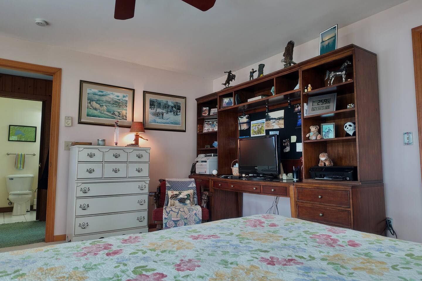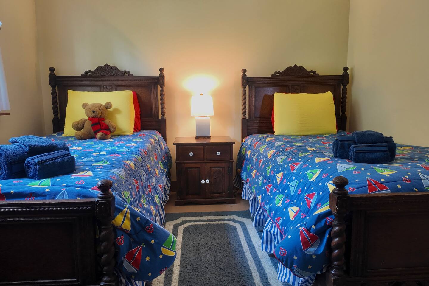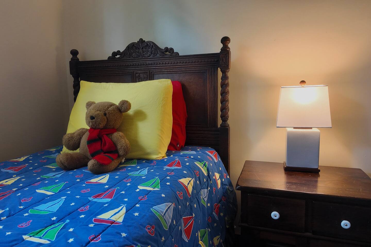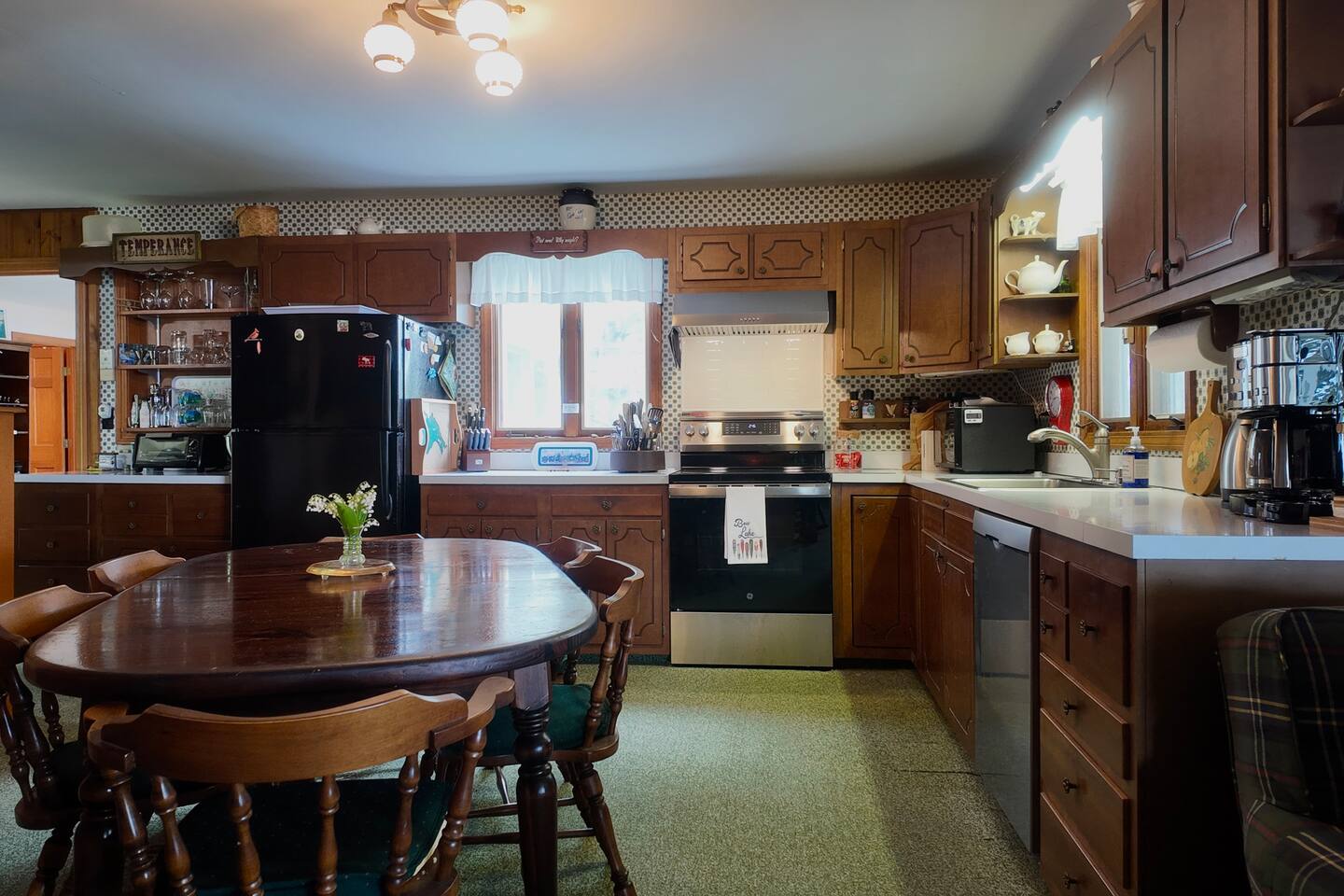 Here's more of a deep dive into our home! Living Room ✓ Four sofas, accent chairs, throw pillows, blankets ✓ Flat screen smart TV ✓ Books and board games ✓ 2 coffee tables ✓ Desk space ✓ Fireplace (please do not use!) ✓ Slider to outside porch ✓ Views of the lake Dining Room/Kitchen ✓ Large dining table that seats 6 ✓ Coffee maker ✓ All small appliances you could need ✓ Dishwasher ✓ Stove/Oven ✓ Many utensils and dishware ✓ Laundry area Bedroom One ✓ Comfy queen size bed ✓ Disinfected pillows and linens ✓ Large closet with hangers ✓ Mirror ✓ Two nightstands ✓ Storage space Bedroom Two ✓ Three twin sized beds (one bunk, one regular) ✓ Disinfected pillows and linens ✓ Large closet with hangers ✓ Nightstand ✓ Storage space Bedroom Three ✓ Two twin sized beds side by side ✓ Disinfected pillows and linens ✓ Large closet with hangers ✓ Nightstand ✓ Console table ✓ Mirror Bedroom Four ✓ King sized bed ✓ Disinfected pillows and linens ✓ Desk area ✓ Two nightstands ✓ Dressers ✓ Seating area ✓ Lake views ✓ Private outdoor seating area ✓ Attached private master bathroom ✓ TV Master Bathroom ✓ Tub/Shower combo ✓ Large vanity sink ✓ Private toilet ✓ Body wash, shampoo, conditioner ✓ Storage space ✓ Dresser Full Bathroom ✓ Tub/Shower combo ✓ Large vanity sink ✓ Toilet ✓ Body wash, shampoo, conditioner Half Bathroom ✓ Sink w/ mirror ✓ Toilet Laundry Area ✓ Ironing board, iron ✓ Washer and dryer