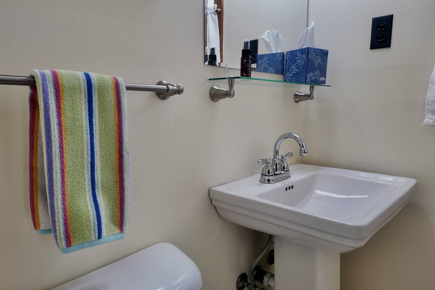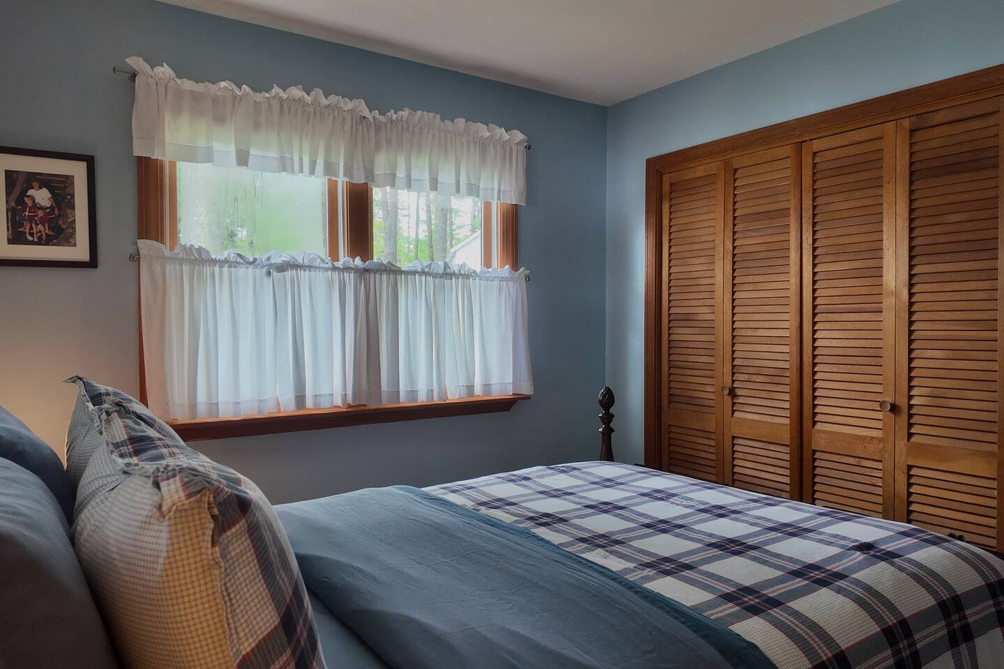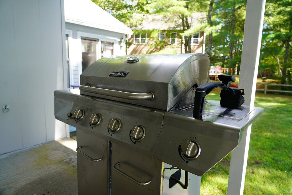 Our home has the classic New England style and makes the perfect getaway for the whole family. Outside you'll be met with a very spacious front and backyard, as well as an oversized covered porch with lots of seating. The home is all one level, with one or two steps up to the entryway. Inside you'll find one large master bedroom w/ master bathroom, three smaller bedrooms, one full bathroom, one half bathroom, a fully equipped kitchen w/ a dining room table seating 6, and a super cozy living room. Please see further details on each room below!